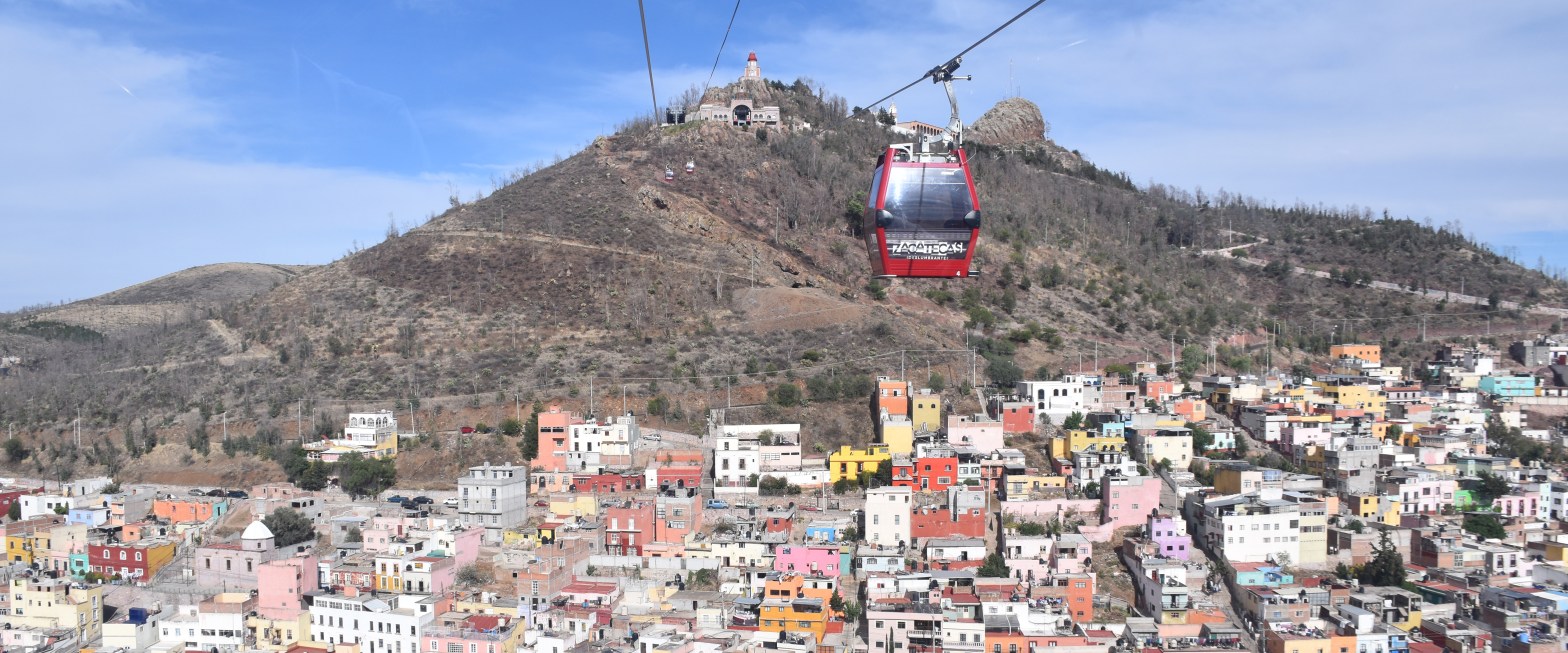 Nach der kurzen Stadtbesichtigung ging es mit dem Auto weiter zur Teleférico-Station. Das ist eine Seilbahn, mit der man über die Stadt zu dem Aussichtspunkt Cerro de la Bufa gondeln kann. Ich habe mich also dem Wunsch der Kinder gebeugt – erwähnte ich schon mal, dass ich am liebsten festen Boden unter den Füßen habe, wo nichts auf mich rauffallen oder ich runterfallen kann? – und wir haben uns einmal Zacatecas von oben angesehen. Es war natürlich schon interessant zu sehen, dass es auch in Zacatecas nicht sooo viele bunte Häuser gibt, wie man es klischeehaft von Mexiko immer erwartet und die Aussicht war grandios. Während der Fahrt versuchte ich auch schön den gläsernen Fußboden der Gondel zu missachten. Am Aussichtspunkt angekommen, der ein großer Hügel nahe der Stadt ist, haben wir noch den dortigen Platz, der früher zu Militärzwecken diente, erkundet. Dort gibt es auch eine kleine Kirche und ein Museum über die Einnahme von Zacatecas, in dem über die sozialen und militärischen Zustände zu dieser Zeit berichtet wird. Das haben wir uns allerdings nicht angesehen und aufgrund mangelner Spanischkenntnisse hätten wir nicht allzu viel verstanden.