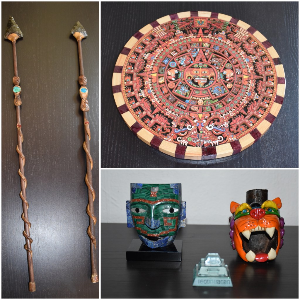 Wir konnten Teotihuacán natürlich nicht verlassen ohne zumindest ein kleines Andenken für unsere Mexiko-Ecke zuhause mitzunehmen. Der Mittlere und die Kleine suchten sich „garantiert echte“ aztekische Speere und einen Jaguarkopf aus und wir nahmen uns eine aztekische Maske aus Obsidian und den aztekischen Kalender für die Kinder mit. Gratis dazu gab es sogar noch eine kleine Glaspyramide.