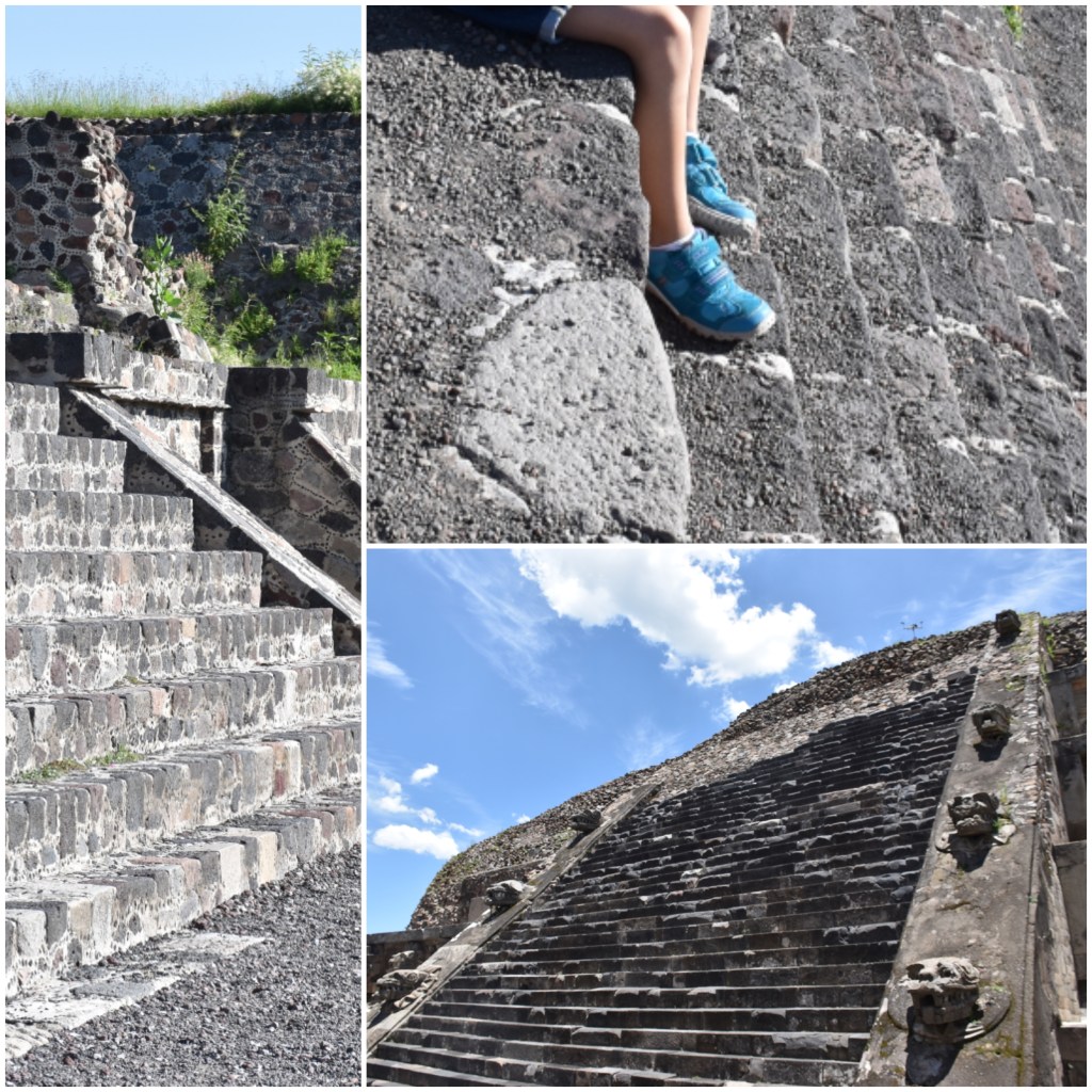 Um zur Pyramide zu kommen, musste man zunächst eine kleine Anlage überwinden, deren Stufen extrem steil und die Stufentiefe sehr gering war. Die Stufentiefe hatte ca. Kinderschuhlänge, sodass man als Erwachsener quer laufen musste, um nicht Gefahr zu laufen herunterzufallen. Die Stufen der Pyramide hingegen waren von der Tiefe her „normal“, aber die aller anderen Gebäude und Anlagen nicht. Ob die Leute früher wohl deutlich kleinere Füße hatten?