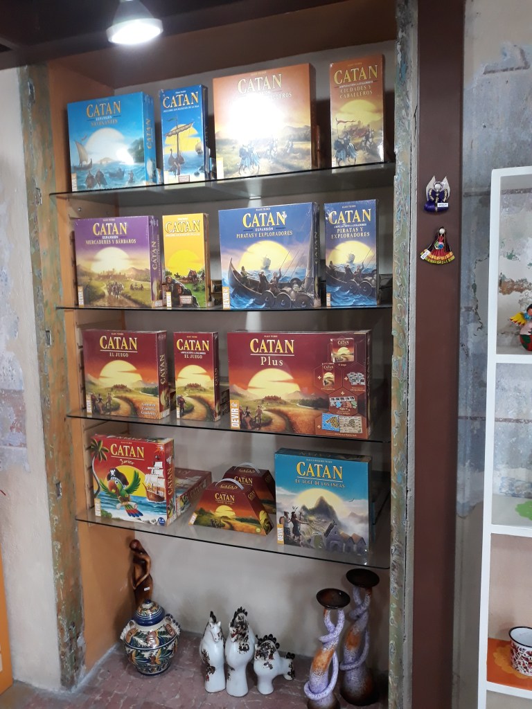 Zum Essen gingen wir in das Restaurant La Soldadera, welches direkt an der Straße gegenüber der Pyramide liegt. Da wir wie so oft zu unüblichen Zeiten essen gegangen sind, ging das Servieren des Essens sehr schnell und wir waren auch sehr zufrieden mit der Qualität. Danach guckten wir uns noch ein wenig in der Stadt um und fanden durch Zufall tatsächlich einen Laden mit vielen (deutschen) Brettspielen: Siedler von Catan, Scrabble, Dominion usw. Dazu muss man wissen, dass es in Mexiko nicht unbedingt üblich ist als Erwachsener zu spielen, d.h. hier gibt es vorrangig Brettspiele für Kinder und das wars. Da wir sehr gerne spielen, nahmen wir uns als Erinnerung an Cholula das Spiel Tikal mit. Da geht es zwar um Ausgrabungen der Mayas und nicht der Azteken, aber man kann nicht alles haben.