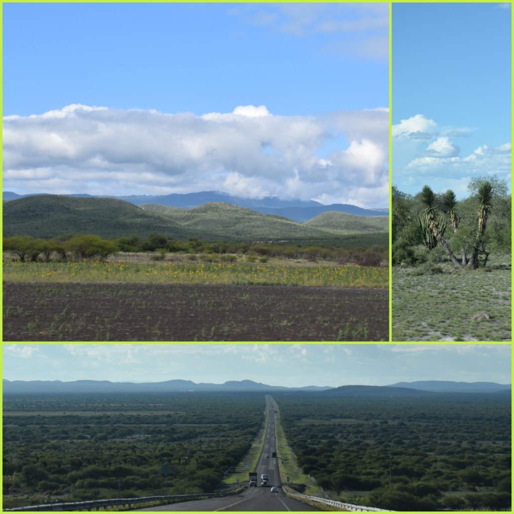 Die Lagune liegt in „unserem“ Bundesstaat San Luis Potosí und ist nur 140 km von uns entfernt. Da der Mittlere und die Kleine aber sehr magenempfindlich sind, mieden wir die kürzeste, aber dafür kurvenintensive Straße und nahmen einen Umweg von 50 km in Kauf, der zeitlich jedoch keinen Unterschied machte. Die Landschaft war wie immer schön, abwechslungsreich und ganz anders als man es von Deutschland gewohnt ist. Weites Land ohne Dörfer, Städte oder sonstiges, kilometerweite schnurgerade Autobahnen, sanft geschwungene Hügel, die ganz weich aussehen und zum Streicheln einladen. Je näher wir Ríoverde kamen, desto grüner wurde ringsherum auch alles.