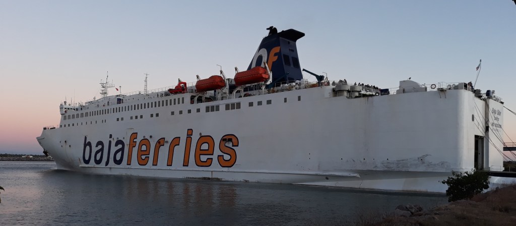 Am nächsten Morgen kamen wir pünktlich gegen 8 Uhr am Fährhafen von La Paz an. Leider mussten wir wieder getrennt das Schiff verlassen und ich musste mit den Kindern durch eine Sicherheitskontrolle ähnlich wie am Flughafen gehen. Wozu das dienen sollte, nachdem wir bereits in Mazatlán ausgiebig kontrolliert worden waren, weiss ich nicht. Wie sollte man bitteschön bei der nächtlichen Überfahrt mit Sack und Pack auf das Schiff gelangen?! Trotzdem ließen wir natürlich die gesamte Prozedur lächelnd über uns ergehen, zeigten gerne 3 verschiedenen Beamten unseren Reisepass und das Touristenvisum – unsere green card befand sich gerade im Erneuerungsprozess – und erklärten gerne 5 mal, warum wir keine green card besitzen, obwohl wir in Mexiko wohnhaft sind.