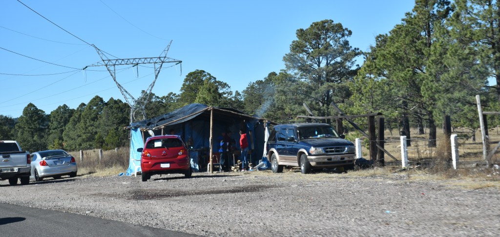 Neben den offiziellen Rastplätzen, die quasi immer an eine Tankstelle angegliedert sind und lediglich aus dem Supermarkt Oxxo und einem kleinen dazugehörigen Parkplatz bestehen, gibt es noch die privaten Rastplätze. Wenn der Seitenstreifen breit genug ist, stellen dort private Leute ihre „Zelte“ auf und kochen und verkaufen typisch mexikanische Gerichte wie z.B. Tacos oder Enchiladas.