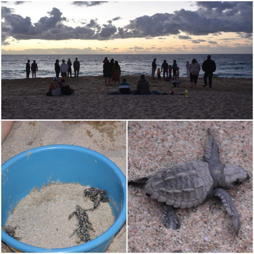 Am Strand angekommen stellten wir schnell fest, dass wir nicht die Einzigen mit dieser Idee waren. Trotz des großen Andrangs bekamen wir die kleinen Schildkröten, die in kleinen Plastikschüsseln umherkrabbelten, zu sehen. Danach gesellten wir uns zu den anderen wartenden Leuten am Strand und genossen die abendliche Stimmung.