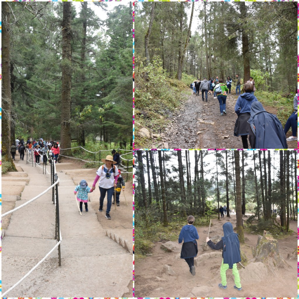 Leider ließ sich nichts machen und er verwies stattdessen auf einen recht baufälligen Verschlag, wo wir Laila, während wir uns die Schmetterlinge anschauen, anleinen könnten. Das kam für uns nur überhaupt nicht in Frage, da a) so eine Tour ca. 3 Stunden dauert und es für sie nicht zumutbar ist und b) jede dahergelaufene Person Laila einfach hätte mitnehmen können. Also gingen die Kinder und ich alleine den offiziellen, abgezäunten Weg – der Eintritt war wie so oft in Mexiko sehr günstig. Ca. 2 € pro Person – und mein Mann lief mit Laila einen Parallelweg. Wir hofften, dass wir uns irgendwo treffen könnten und dann eine fixe Übergabe mit Laila machen könnten, damit alle die Schmetterlinge sehen können.