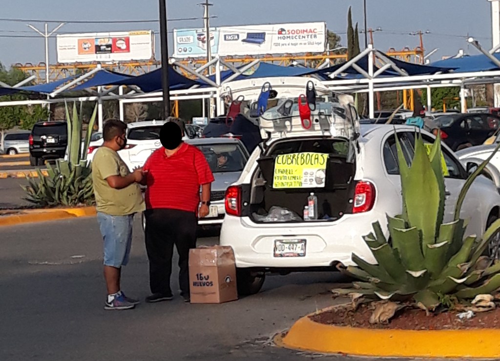 Do, 30.04.20 – Auch hier steigt die Arbeitslosigkeit rapide an, doch immerhin sind die Mexikaner kreativ und Einige sind auf den Verkauf von Mundschutz, selbsthergestelltem Desinfektionsmittel (da ist allerdings fraglich, wie gut es desinfiziert) und Gesichtsvisieren umgestiegen. D.h. nun sieht man überall am Straßenrand und auf Parkplätzen Autos, die aus dem Kofferraum heraus ihre Waren verkaufen.