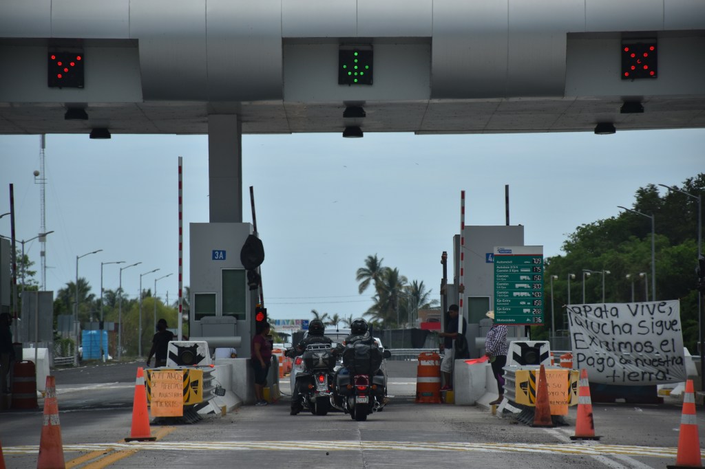 Nach 7 Stunden Fahrt kamen wir in Matanchén an. Da wir wie immer auf der cuota, der Bezahlautobahn, fuhren, kamen wir auch an Mautstationen vorbei. In Nayarit saßen jedoch in allen Mautstationen Bewohner der jeweiligen Gegend und versperrten die Straße. Dabei hielten sie große Banner mit der Aufschrift „La lucha sigue. Exigimos el pago de nuestra tierra.“ (auf deutsch „Der Kampf dauert an. Wir fordern die Zahlung für unser Land.“) in die Höhe und man durfte nur weiterfahren, wenn man 50 Pesos bezahlte. Auch, wenn das weniger ist als die eigentliche Maut, fühlten wir uns leicht unwohl.