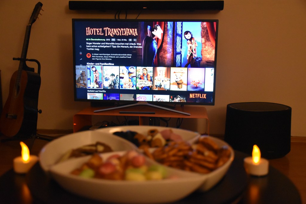 Nachdem sich alle genug gegruselt hatten, durften die Kinder an unsere Türen klopfen und wahlweise wie an Ostern Süßigkeiten im Zimmer suchen oder sich gegen richtig gelöste Spaß-Rechenaufgaben an der Süßkramschüssel bedienen. Ich weiss, ich fiese Mama! Aber wir hatten eine Menge Spaß. Zum krönenden Abschluss schauten wir den Film Hotel Transylvania bei einer großen Portion deutscher Süßigkeiten. Beides kann ich nur empfehlen! Den Film fanden wir so lustig, dass wir am nächsten Tag gleich noch den zweiten Teil schauten.