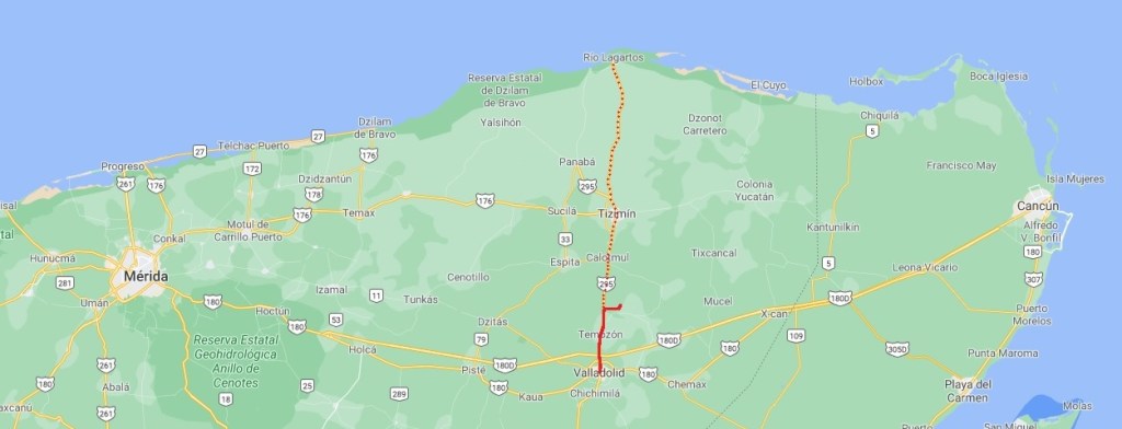 Auf dem Weg von Valladolid nach Río Lagartos machten wir an Ek Balam, einer relativ unbekannten Mayastätte 30 km nördlich von Valladolid, halt. Diese wurde erst vor ca. 25 Jahren freigelegt, befindet sich mitten im Urwald und eignet sich wegen ihrer Nähe zu Valladolid perfekt für einen Tagesausflug oder für einen Zwischenstop, wie wir ihn hatten. Ek Balam ist Mayathan und bedeutet je nach Aussprache schwarzer Jaguar oder Stern Jaguar.