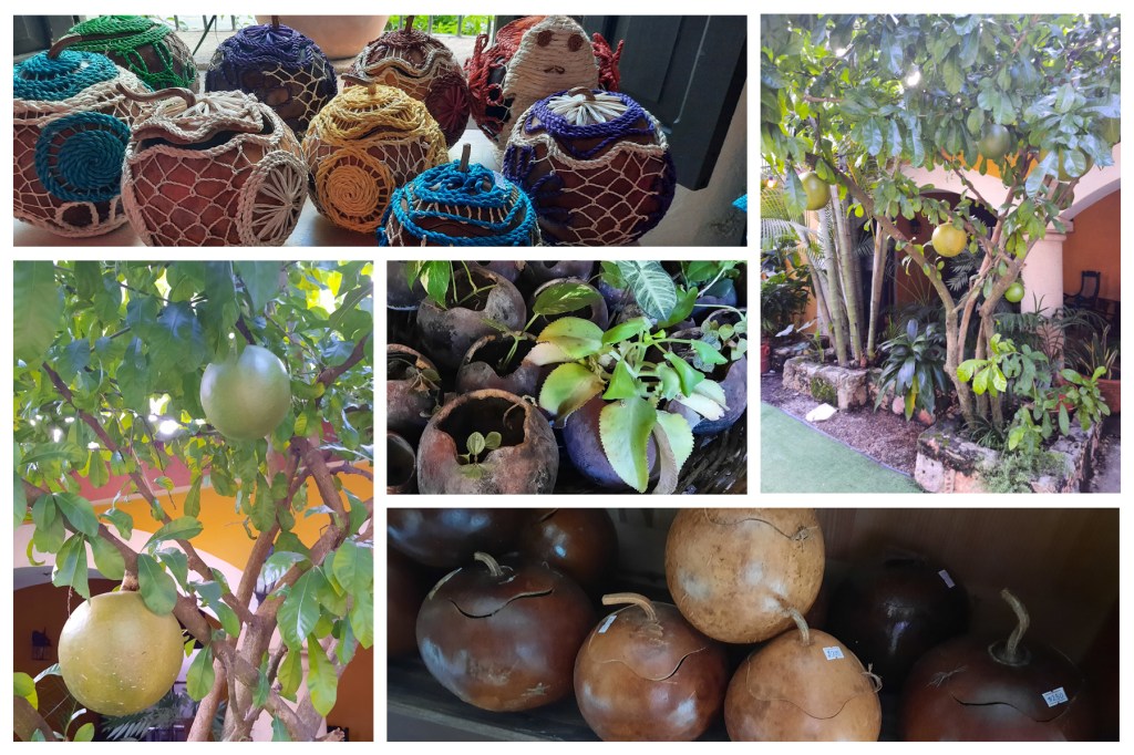 Dort haben wir auch zum ersten Mal einen Kalebassenbaum, auf spanisch jicaro, gesehen. Seine natürliche Heimat sind sowohl die westindischen Inseln als auf das Gebiet von Südmexiko bis Peru. Der Baum wird nicht besonders groß, doch das Interessante sind seine großen runden Früchte, aus denen unter anderem Trinkgefäße, Blumentöpfe oder sonstige Behältnisse hergestellt werden. Die Früchte, die auf spanisch jicaras heißen, können einen Durchmesser von bis zu 30 cm erreichen, was ich ganz schön enorm finde.