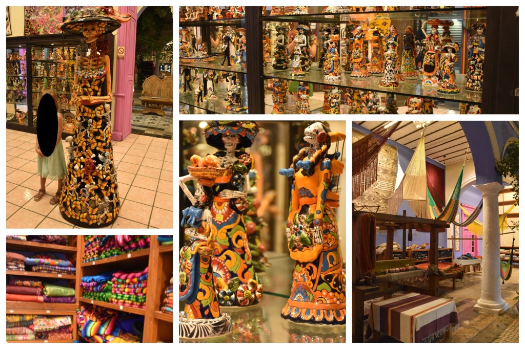 Trotz dieses Schreckmoments wurden wir noch in einem der vielen Kunsthandwerksläden, die es rund um den großen Platz Plaza Principal de Mérida gibt, fündig und kauften uns dort endlich eine kleine Catrina. Wir waren schon seit 2 Jahren auf der Suche nach einer passenden Figur, die in unsere kleine Mexiko-Erinnerungsecke kommen sollte, doch bisher hatten wir nur welche aus Pappe / Zeitungspapier gesehen, die uns nicht langlebig genug erschienen. In dem Geschäft Mercado Principal y Taller de Arte Maya gab es neben bunten Hängematten, Hüten und anderem Kunstwerken eine riesige Auswahl an Porzellan-Catrinas in allen möglichen Größen und in den verschiedensten Positionen. Zum Thema Catrina findet ihr in meinem Blogbeitrag Día de muertos mehr Infos.