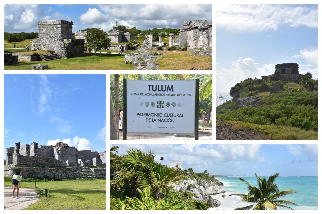 Tulum: Eine eher kleine Anlage ist die archäologische Zone in Tulum. Obwohl es weitaus imposantere, größere und auch besser erhaltene Ruinenstätten gibt, so ist Tulum etwas ganz Besonderes, da sie die einzige Stätte ist, die direkt an der Küste steht. Doch trotz des beständig wehenden Windes war es dort besonders heiß, weil es kaum Bäume gab, die Schatten spenden.
