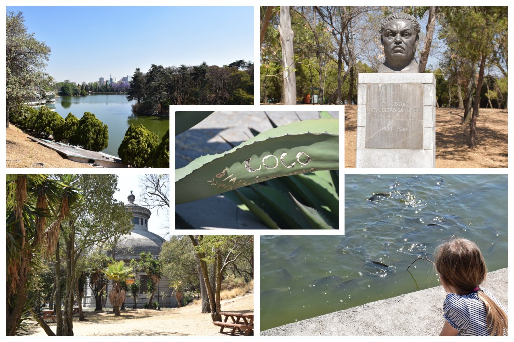 Da die Termine an den beiden Tagen jeweils nur wenige Stunden dauerten, nutzen wir die restliche Zeit für eine letzte Erkundung von Mexiko City. Dieses Mal liefen wir durch den weitläufigen, aber ziemlich vertrockneten Parque Chapultepec II, der direkt neben dem Parque Chapultepec I liegt, indem sich auch das anthropologische Museum und das Castillo Chapultepec befinden. Dafür war der See – sehr zur Freude der Kinder – reich an Fischen.
