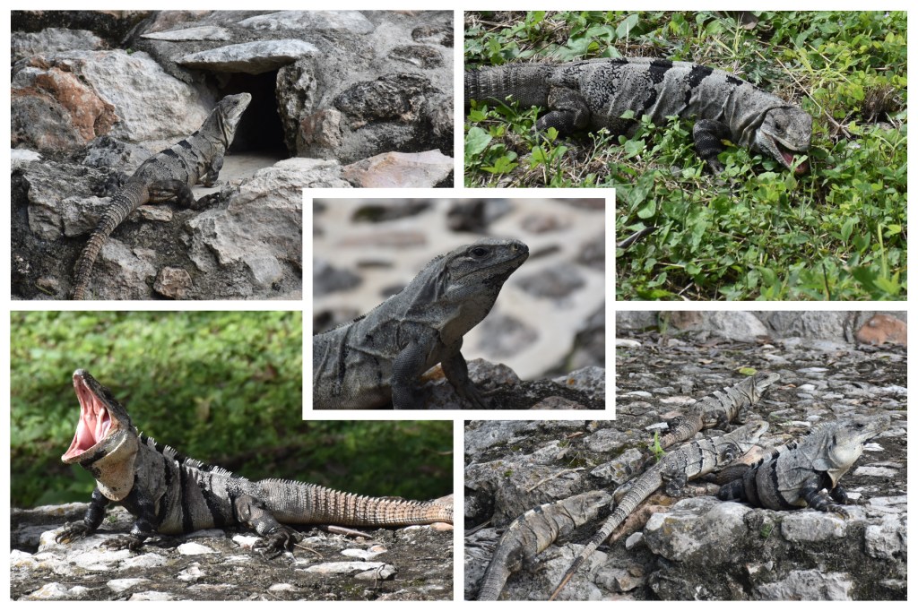 Wie bei allen bisherigen Ruinenstätten konnten wir auch hier viele Leguane sehen, auch wenn sie farbenmäßig eher trist waren und perfekt zu den grau-braunen Steinbauten passten. Ich kann diesen, mal mehr mal weniger, großen Echsen eigentlich wenig abgewinnen, da sie mir für meinen Geschmack viel zu sehr Krokodilen und Schlangen ähneln, aber irgendwie sind sie doch faszinierend, sodass wir auch dieses Mal eine Viertelstunde der Beobachtung dieser Tierchen widmeten und ihnen beim Fressen, Sonnen und Gähnen zusahen.