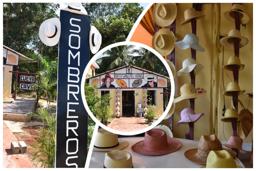 Noch ein paar Worte zur Herstellung der Hüte: Außerhalb von Mexiko sind diese Sonnenhüte als Panamahüte bekannt, in Mexiko selbst werden sie unter anderem jipijapa genannt, da sie aus der Faser der Jipi-Palme hergestellt werden. Hierfür werden die Blätter der Palme zunächst in passende Stücke geteilt und in Schwefel gekocht, um sie zu bleichen. Danach werden sie in eine der 2000 umliegenden Kalksteinhöhlen gebracht, denn damit die Fasern flexibel und weich genug zum Flechten sind, benötigen sie eine gewisse Feuchtigkeit und Temperatur. Dies erklärt auch, warum die Produktionsstätte der Panamahüte ausgerechnet in Bécal liegt und nicht woanders…. Da gab es einfach keine entsprechenden Höhlen!
