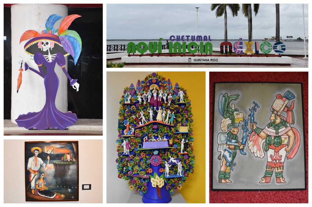 Aufgrund des Dauerregens machten wir außerplanmäßig einen Ausflug nach Chetumal, die östlichste Stadt Mexikos an der Grenze von Belize. Außer dem Erlebnismuseum Museo de la Cultura Maya, welches unser Ziel war, und einem hübschen Malecón hat die Stadt touristisch wenig zu bieten. Das Museum liegt teils im Freien, teils in luftigen Räumen, doch leider waren die Räume mit der Maya-Kultur wegen Corona geschlossen und nur einige kleine Kunstgalerien waren geöffnet, weswegen der Eintritt zwar kostenlos, aber der Ausflug leider nur mäßig interessant war.
