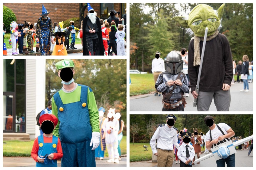 Am letzten Schultag vor Halloween durften die Kinder verkleidet zur Schule kommen, es wurden Filme geschaut, Spiele gespielt und Süßigkeiten verteilt. Außerdem gibt es an unserer Schule die Tradition, dass eine Primer-Senior-Parade stattfindet. Auf dieser laufen die Vorschüler und 12.Klässler in kleinen Gruppen vor der restlichen Schülerschaft und präsentieren ihre Kostüme, wobei sich die Gruppen vorher jeweils abstimmen mussten, damit ihre Kostüme zueinander passen. Auch wenn es insbesondere für die Vorschüler teilweise eine kleine Mutprobe darstellte, sich vor so vielen Leuten zu präsentieren, so waren sie doch herzallerliebst anzuschauen und unsere Kinder waren begeistert von den vielen verschiedenen Kostümen. Nur unserem Großer, der in 2 Jahren ebenfalls zu den Seniors gehört und auf der Parade mitlaufen muss, graut es schon vor diesem Tag…