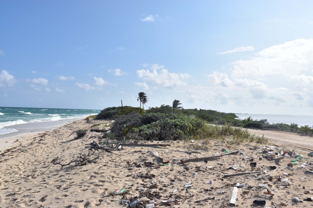 Auf den 12 km Hinfahrt fuhren wir lange Zeit direkt am Meer entlang, wobei es erstaunlich wenig Strandzugänge, dafür aber erschreckend viel Müll gab. Nach so langer Zeit in Mexiko müssten wir eigentlich schon daran gewöhnt sein, dass Straßenränder und Dünen kleinen Müllhalden ähneln, aber in einem Nationalpark hätte ich das trotzdem nicht erwartet. Allerdings sind in diesem Fall vermutlich nur bedingt Strand- und/oder Parkbesucher dafür verantwortlich, da der meiste Müll wahrscheinlich vom Meer angespült wird. Das macht die ganze Sache aber nicht wirklich besser.