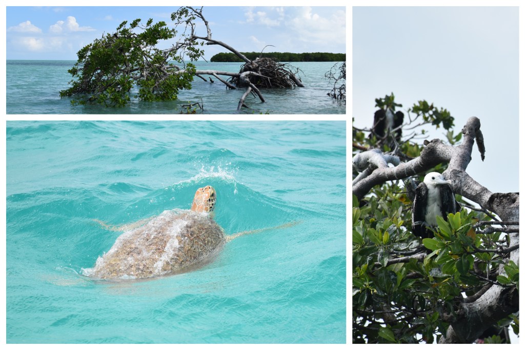 Danach ging es zur Insel Cayo Culebra, auf der man wunderbar Vögel beobachten kann. Da wir in den letzten Wochen jedoch schon mehrfach in diesen Genuss kamen, wir eh keine ambitionierten Hobby-Ornithologen sind und sich die Insel wegen des gerade erst vorübergezogenen Hurrikans in einem recht desolaten Zustand befand, wurde es nur ein sehr kurzer Abstecher. Zurück ging es Richtung Punta Allens Ostküste, die lange relativ flach ist und deswegen gerne von Schildkröten besucht wird. Kaum angekommen, sahen wir auch schon mehrere Schildkröten, eine davon so nah, dass wir sie hätten problemlos streicheln können, wenn wir gewollt hätten (Haben wir natürlich nicht! Und sollte man auch nicht!).