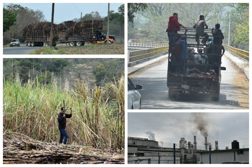 Interessant war auch das Beobachten der Ernte der Zuckerrohrfelder, die dort größtenteils per Hand erledigt wurde. Bevor die vielen Erntehelfer ans Werk gehen konnten, wurden die Felder am Vortag abgebrannt. Auch hier sieht man wieder, dass Mexiko bezüglich Umweltbelastungen noch rückschrittlich unterwegs ist, denn die Feinstaubbelastung der umliegenden Region ist aufgrund der umherwirbelnden Brandasche enorm hoch. Nachdem das Feuer Unkraut, verwelkte Blätter und Mücken verbrannt hatte, ernteten die Bauern am nächsten Tag ihr Zuckerrohrfeld und brachten ihre Ernte mithilfe großer LKWs zu der Fabrik in Tambaca.