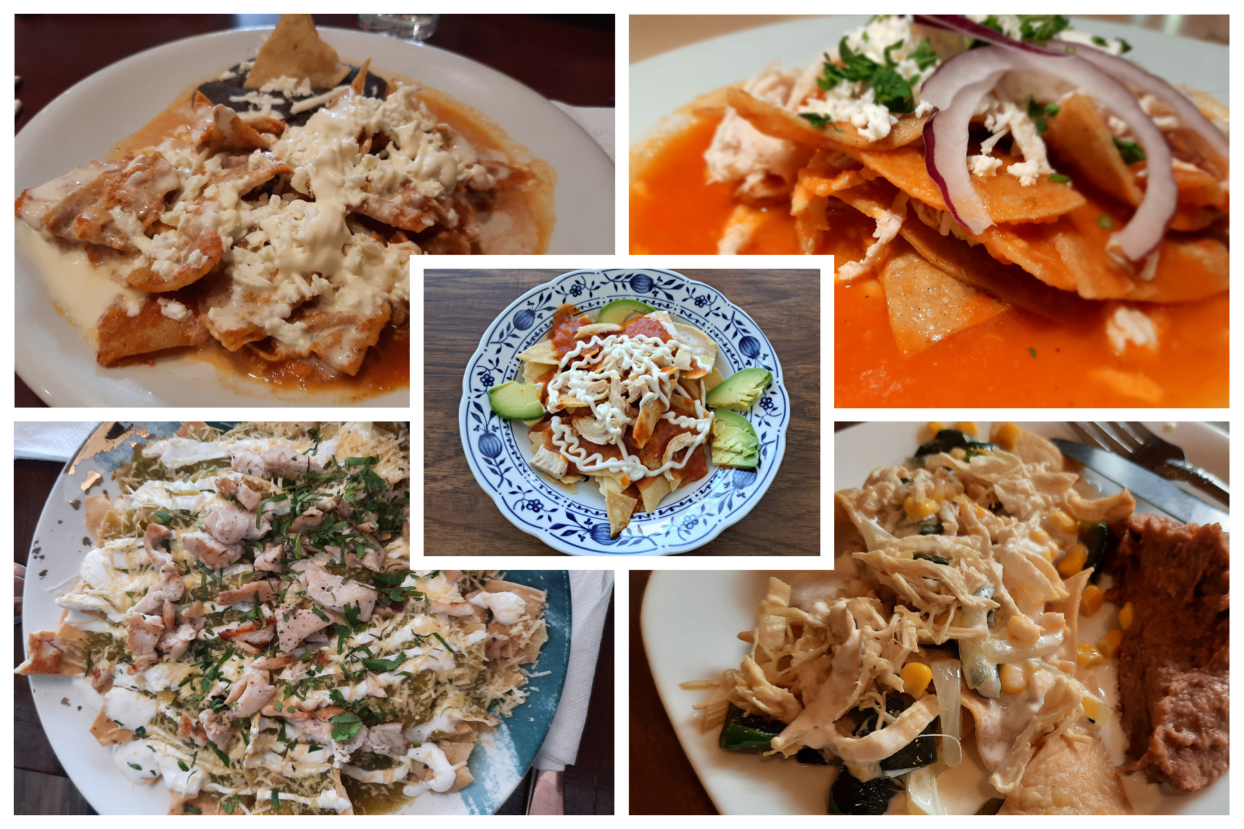 In Mexiko kamen wir in den Genuss vieler verschiedener Varianten, mal mit roter, mal mit (meist schärferer) grüner Soße. Lecker war auch die Mais-Spinat-Variante (siehe Bild unten rechts) in heller Soße, allerdings haben wir das noch nicht nachgekocht.