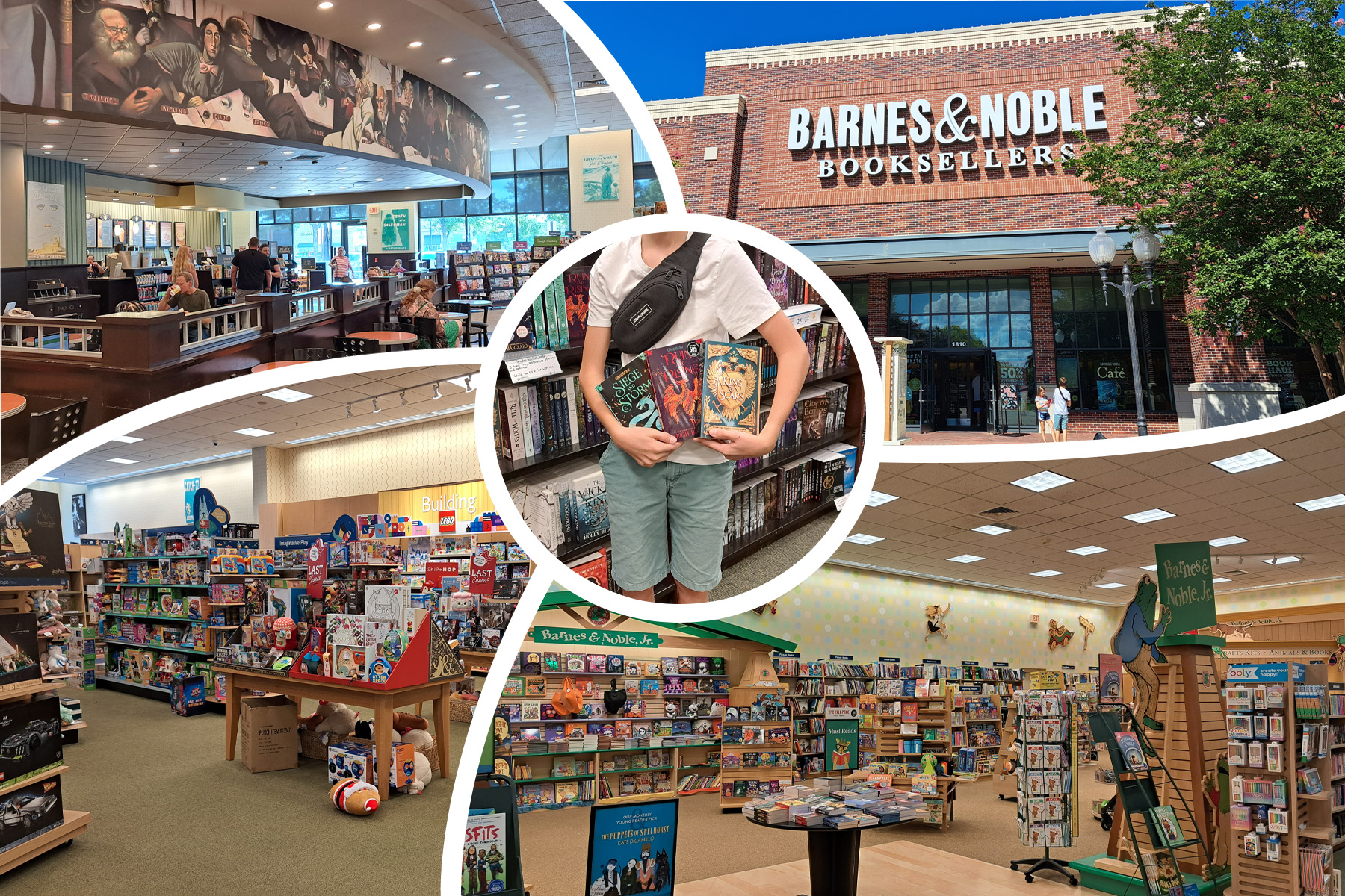 … und der Mittlere gönnte sich bei Barnes & Nobles gleich vier neue Bücher (und zählte mir auf der Rückfahrt auf, welche er noch alle braucht).