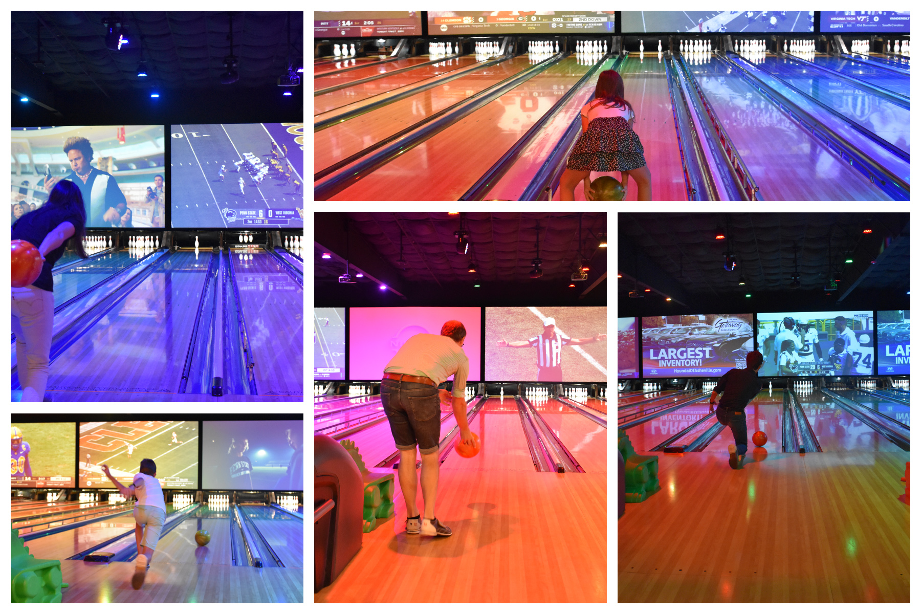 Als Überraschung und weil es sich der Große zum Abschied gewünscht hatte, ging es im Anschluss ins Bowlingcenter. Dass wir alle schon ewig nicht mehr bowlen waren, machte sich schnell bei den Punkten bemerkbar, aber Spaß hatten wir allemal und die Jungs gewannen je ein Spiel – was will man mehr? Während der Mittlere Curveballwürfe übte, versetzte die Kleine uns regelmäßig in ungläubiges Staunen. Denn obwohl sie (ganz unelegant) mit zwei Händen die Kugel hin- und herschwenkte, nur um sie in hohem Bogen auf die Bahn fallen zu lassen, damit sie dann in schneckenhafter Geschwindigkeit Richtung Kegel schleichen konnte, warf sie mit dieser Technik erstaunlich oft 7-9 Kegel pro Wurf um. Selbst welche, die gar nicht hätten umfallen dürfen. Geschwindigkeit ist anscheinend doch nicht immer das Wichtigste. (Als mein Mann es spaßeshalber auch mal mit dieser Technik versuchte, versagte er allerdings kläglich.)