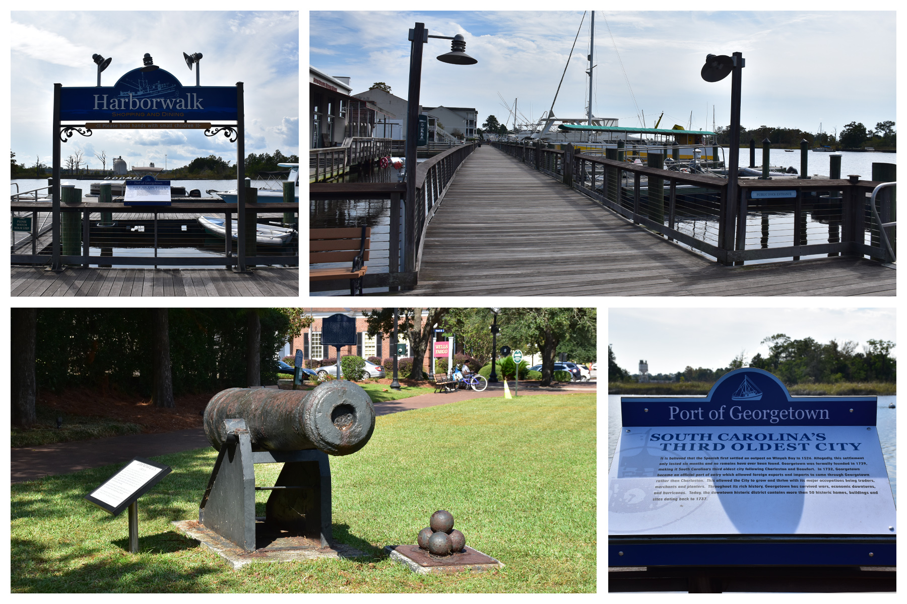 Ein gutes Stündchen von Myrtle Beach entfernt liegt Georgetown, ein idyllisches, in einer Bucht gelegenes, Fischerstädtchen. Als drittälteste Stadt South Carolinas weist sie ähnlich wie Charleston ihren ganz eigenen Südstaatencharme auf und ist dank ihrer nur 9000 Einwohnern sehr beschaulich. Im historischen Distrikt lädt der übersichtliche Harbourwalk zum Flanieren ein, kleine Restaurants und Shops bieten genug Verschnaufpausen und in dem gesamten Ort herrscht himmlische Ruhe. Vermutlich wurde das noch verstärkt durch die Tatsache, dass wir sonntags dort waren, aber es war auf jeden Fall herrlich.