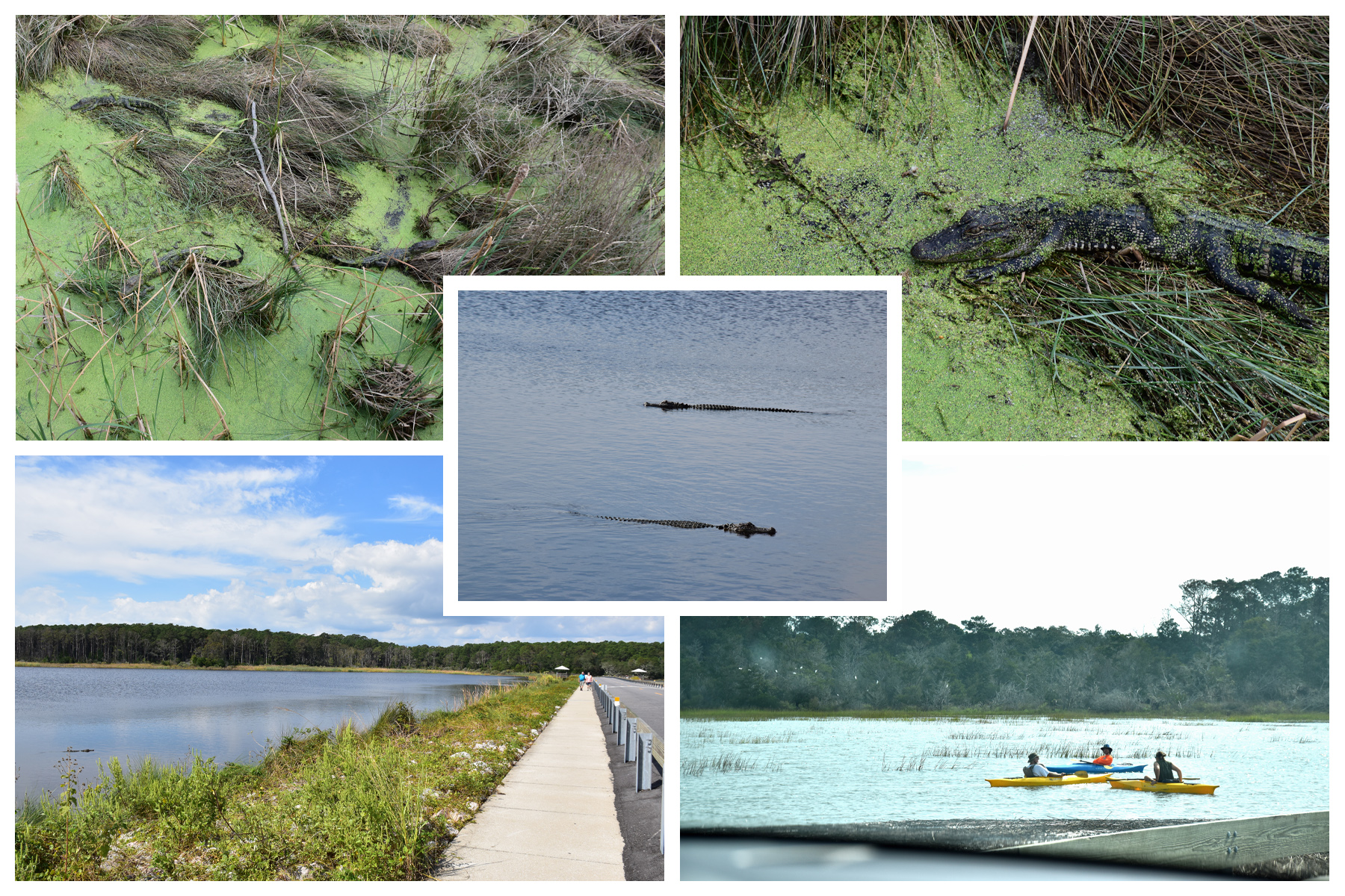 Bereits kurz nach der Einfahrt begrüßten uns Gewässer, deren Oberfläche von Krokorücken nur so wimmelten und an deren Rand ein Wanderweg mit erstaunlich vielen Leuten zu finden war. „Mutig!“, dachte ich noch, nicht wissend, dass wir uns später ebenfalls dazu gesellen würden.