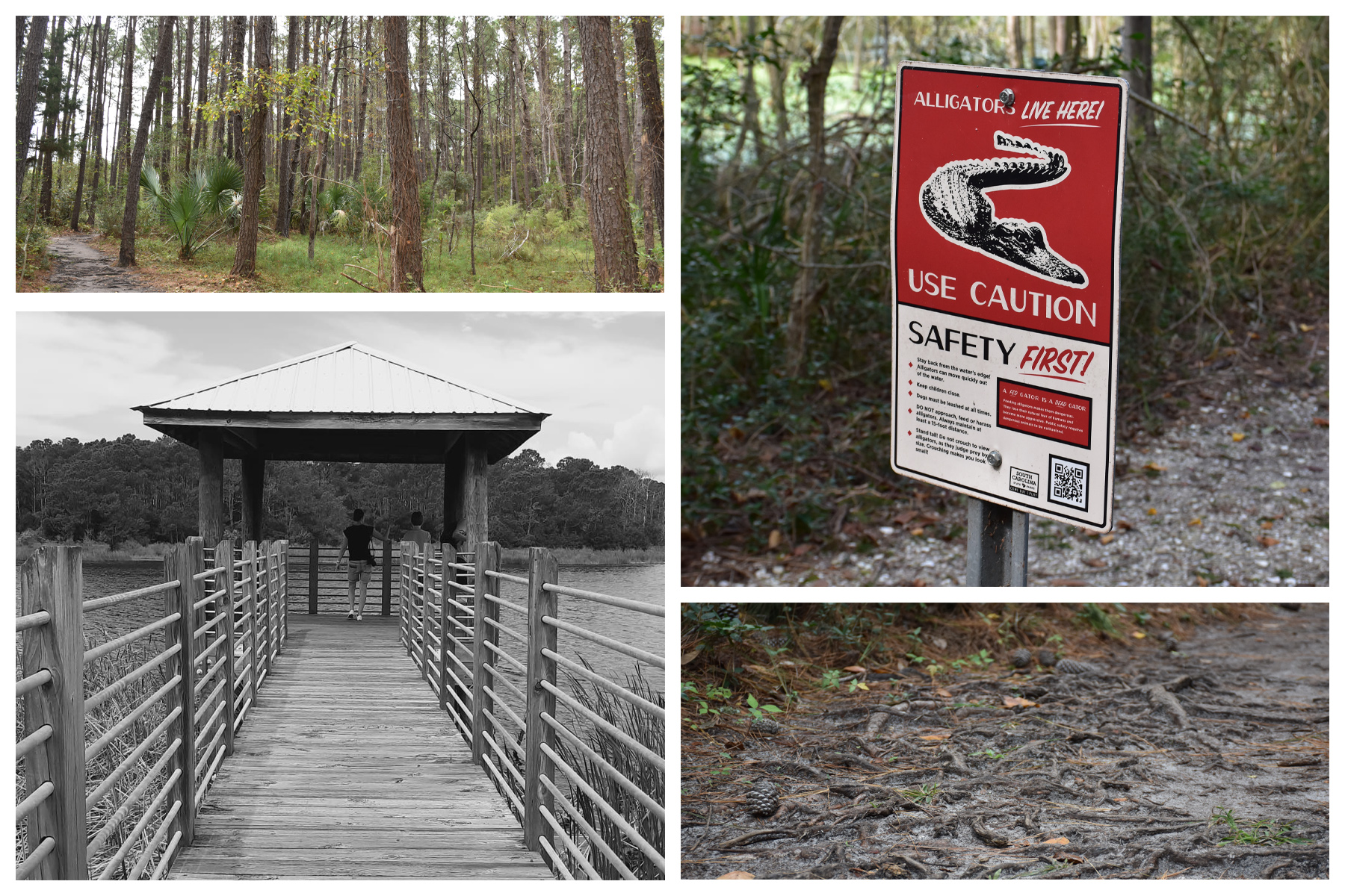 Doch zunächst folgten wir den Schildern zum Hauptparkplatz, besorgten uns im Besucherzentrum unseren obligatorischen Stempel (ja, wir haben nicht nur ein National Parks Heft, sondern auch ein State Park Heft von South Carolina) und blieben auf dem Weg zum Wanderweg an einem Cornholespiel hängen. Natürlich gewann das Mädchenteam (mein Mann und der Mittlere würden das wohl dementieren) und so konnten wir uns mit halbstündiger Verzögerung doch noch Richtung Krokodile bewegen.