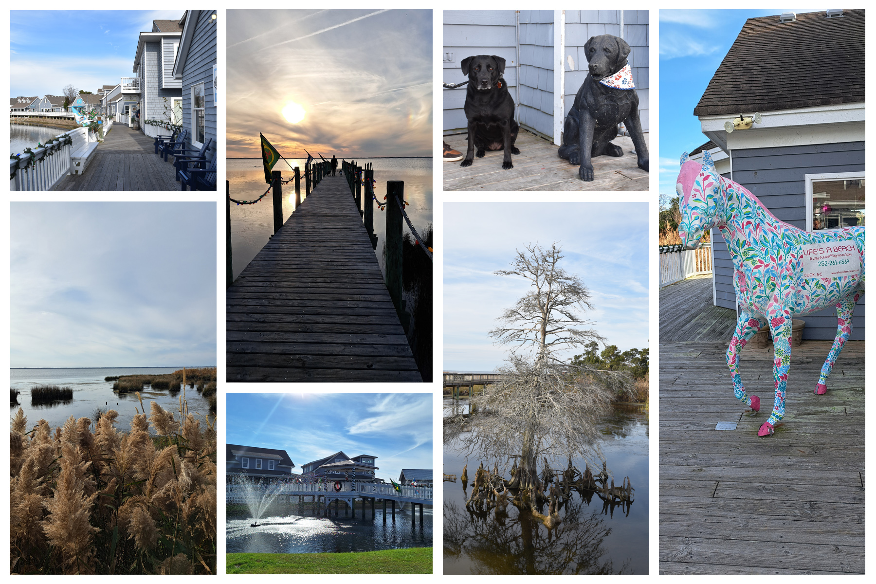 In Duck, wo man als Anspielung auf den Namen vielleicht Entenskulpturen erwartet hätte, waren wegen der wilden Pferde von Corolla überall hübsch bemalte Pferdeskulpturen verteilt. Zwei davon sind bei den Waterfront Shops, wo wir unseren Spaziergang starteten, zu bewundern.
